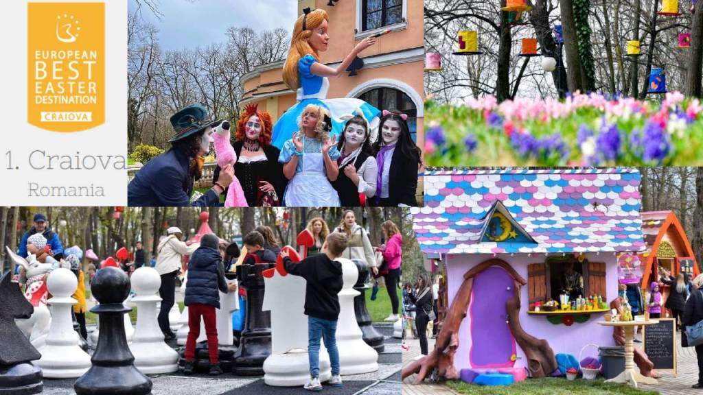 „This year discover the fantastic world of Alice in Wonderland in the Best Easter Destination in Europe! Craiova in spring is literally blossoming. Considered once upon the time the capital of Southern Romanian Aristocracy, Craiova offers now the most beautiful landscapes with amazing flowers in its parks, gardens and public spaces. During Eastern and spring, many projects on urban regeneration are underway in the Botanical Garden, Nicolae Romanescu Park, as well as on the main boulevards in Craiova.