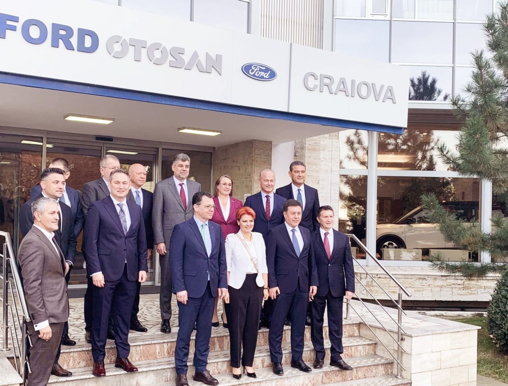 Premierul Marcel Ciolacu s-a dus marţi la lansarea noilor modele Ford Transit Courier şi Ford Tourneo Courier, fabricate la Craiova.