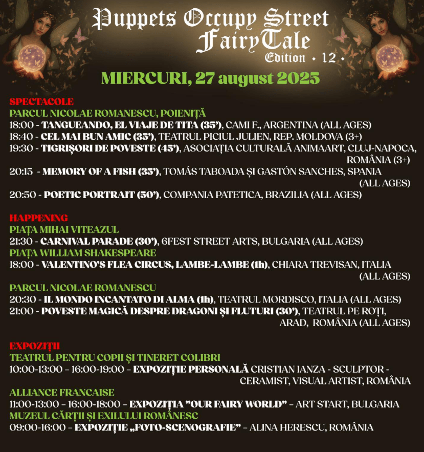 Puppets Occupy Street Festival Craiova , editia a 12-a, aduce 400 evenimente cu artiști din 16 țări, între 25 august și 1 septembrie!